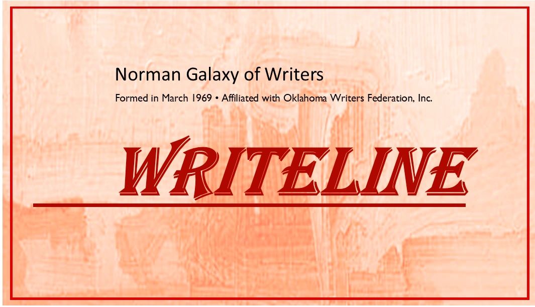 WriteLine is Norman Galaxy of Writers' monthly newsletter, offering meeting minutes, speaker notes, and general tips on writing, community events, and contests. Use the links below to research back issues and check out our current issue. For information, contact Editor Mary Payne at marpayne@netscape.com